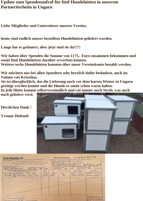 Vereinskonto ausbezahlt und wir können unsere Partnertierheime in