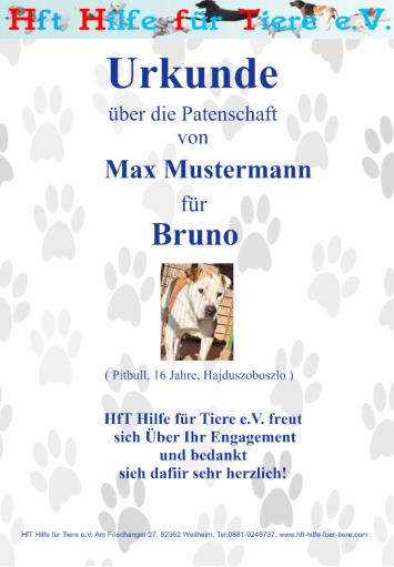 übernehmen. Sie erhalten auf Wunsch eine Patenschaftsurkunde
