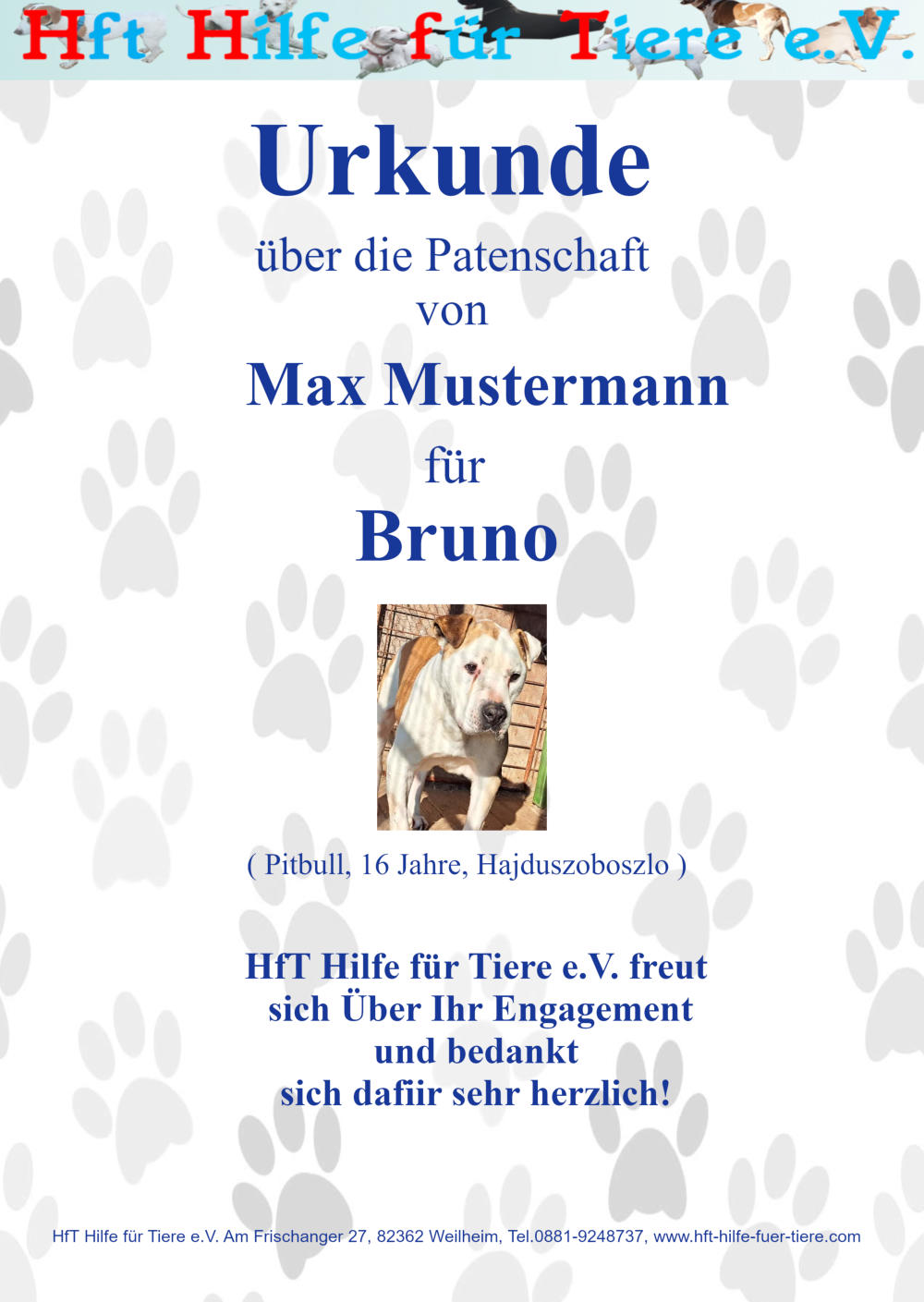 die Möglichkeit, eine Geschenkpatenschaft für einen der Hunde